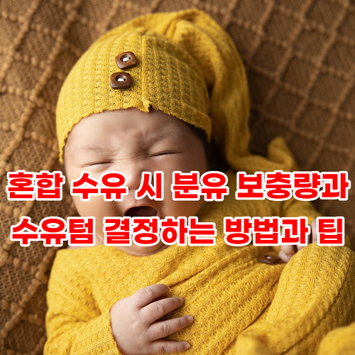 혼합 수유는 모유와 분유를 혼합하여 아기를 수유하는 방법입니다. 이 방법은 모유만 먹이기 어려운 경우 아기의 영양소 섭취를 보장하며, 엄마의 편의성도 높입니다. 그러나 혼합 수유는 모유와 분유의 양을 결정하는 것이 중요합니다. 특히 분유 보충량과 수유텀을 결정하는 것은 아기의 성장과 건강에 직접적인 영향을 미치기 때문입니다.분유 보충량을 결정하는 방법은 아기의 체중과 나이, 모유의 양과 질 등을 고려해야 합니다. 일반적으로 아기의 체중에 따라 분유 보충량을 결정하지만, 아기의 성장 상태에 따라 보충량을 조절해야 합니다. 또한 모유의 양과 질이 충분하지 않은 경우에는 보충량을 늘려야 합니다. 이러한 결정을 위해서는 아기의 상태를 지속적으로 관찰하고, 의사나 소아과 전문의와 상담하는 것이 좋습니다.수유텀을 결정하는 방법은 아기의 배고픔 정도와 체중 증가 상태를 고려해야 합니다. 일반적으로 2~3시간마다 수유를 하는 것이 좋으며, 아기의 배고픔 정도에 따라 수유텀을 조절할 수 있습니다. 또한 아기의 체중 증가 상태를 지속적으로 관찰하여 수유텀을 결정하는 것이 좋습니다. 이러한 방법을 통해 혼합 수유를 효과적으로 할 수 있으며, 아기의 건강과 성장에 도움이 됩니다.
